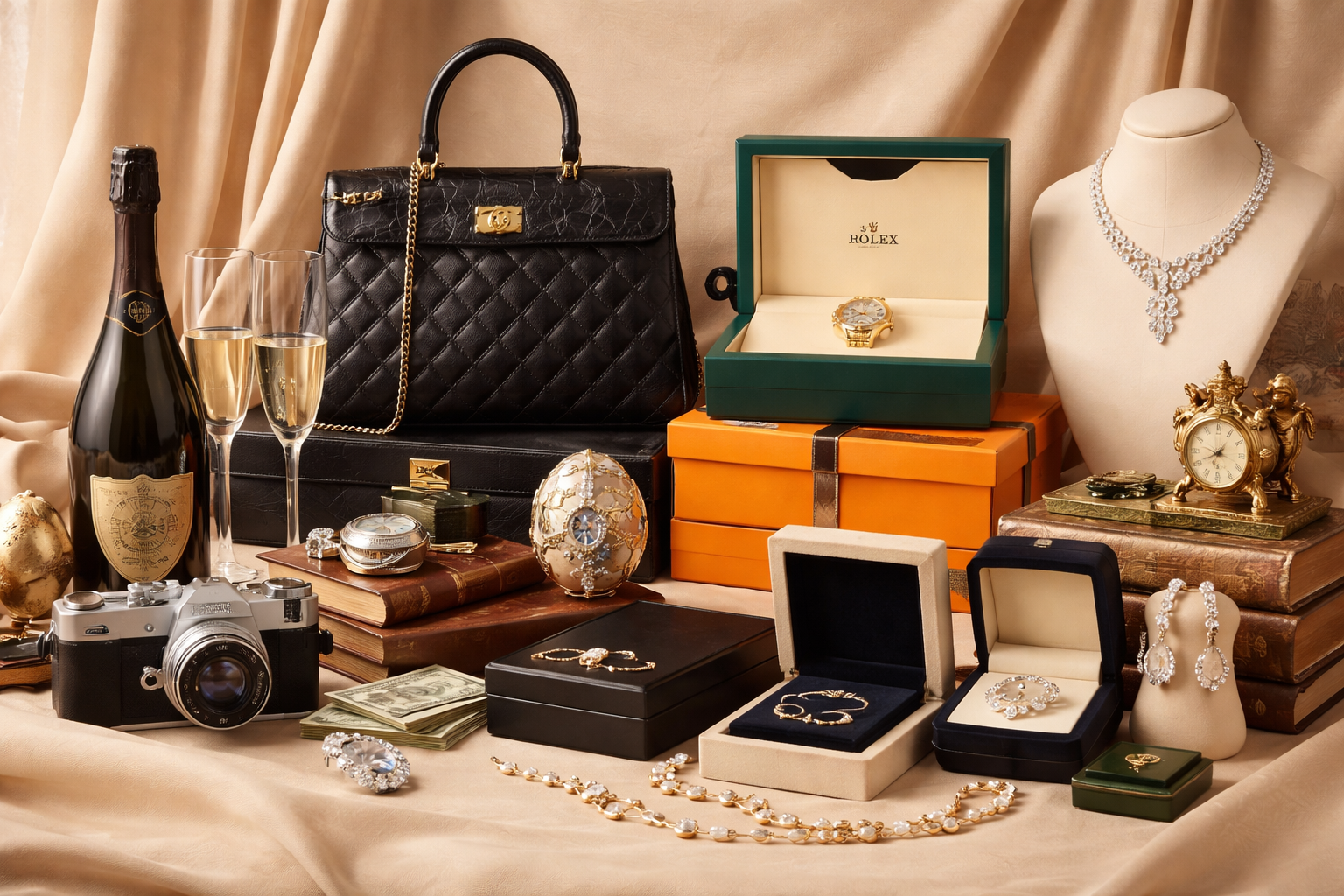 High-end items such as: – Fine jewelry, including Rolex watches – Collectibles, such as Lladros and bronzes – Designer brands like Gucci, Louis Vuitton, and Hermès – Exclusive home decor and artwork – Vehicles, including luxury and classic cars.