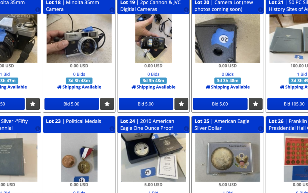 Don’t miss out! This virtual estate auction ends on Nov. 10th with the first lots closing at 6:00 p.m.! Click here to view our entire catalog of items available this week.