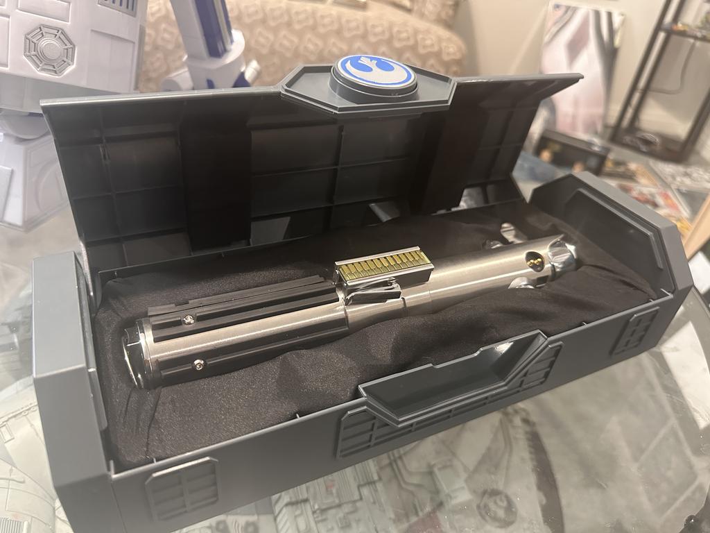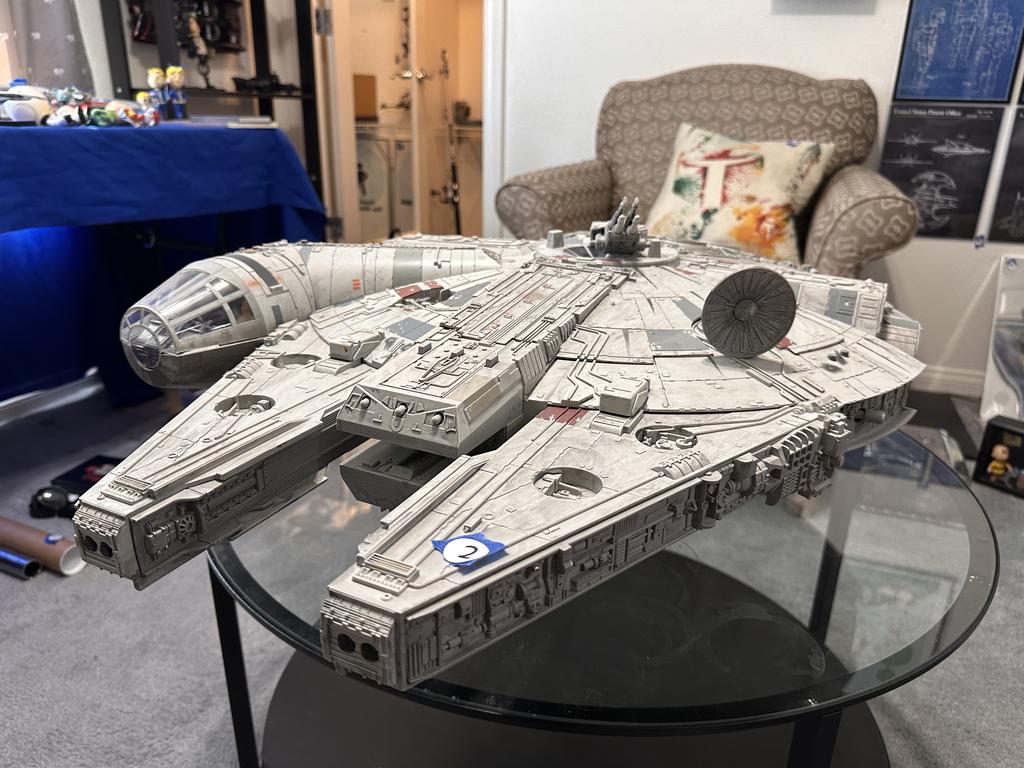 Star Wars Collectibles: A Millennium Falcon with lights and sound, Thinkway Toys R2D2 Interactive Droid, vintage framed action figures, and more iconic pieces from the Star Wars universe.