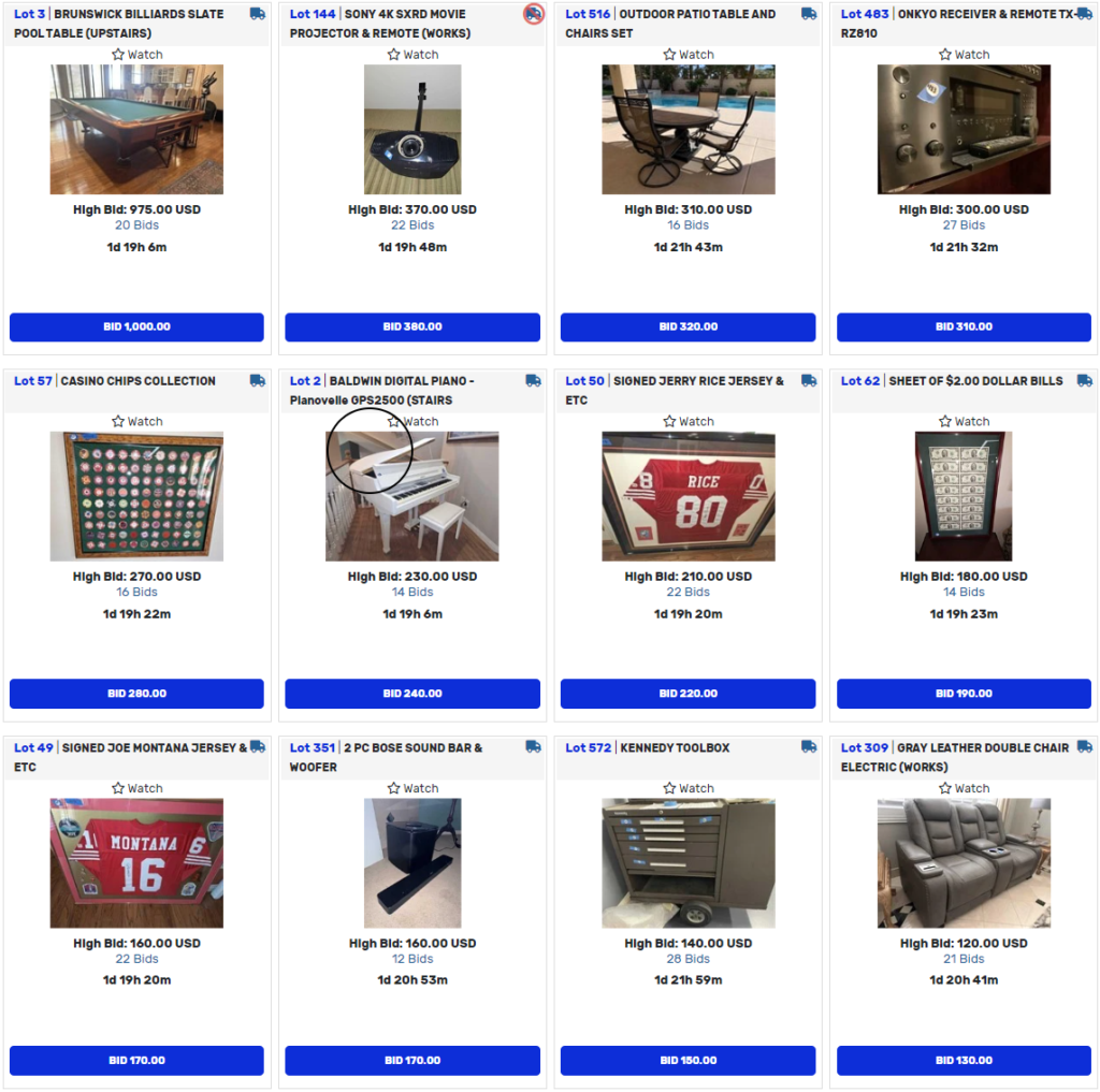 Live Preview: Join us for a live preview on Thursday from noon to 2 PM. Text 702-439-2928 to schedule your appointment and see the items in person before bidding.